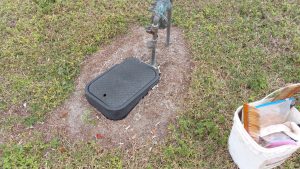 8/30/2025 – A large hive was removed from a water meter box located on Tahiti Street, Isle of Capri. 8 pieces of brood comb were removed and rubber banded on to frames. The beevac was used to get 99% of the bees. The hive was transferred to a BB&G apiary in Naples.