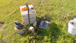 2/27/2026 – A small swarm was removed from a water meter on Willoughby Drive in Naples. The hive was beevaced in to a hive box that contained a sugar water frame and then transported to the apiary.