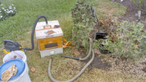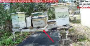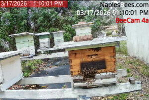 1/10/2026 – A small swarm was removed from a tree at a Countryside Drive, Naples, home. The beevac was used to slowly remove the bees as the queen was spotted and caged. The bees were put in the apiary later along with a sugar water frame feeder to help them get started building comb.