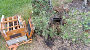 Hundreds of bee removals from trees/houses/roofs/sheds/water meters/etc have been done over the years. Hive access is sometimes difficult and sometimes easy. Every removal situation is different and always an adventure. If you have bees that need removing give us a chance to relocate them to a good home in an area hobby beekeeper’s apiary. The NaplesBees apiary owner is licensed by the state of Florida for live bee removal. Not all types of removals can be done, based on various factors including access to the hive or space in my apiary. Click here to contact NaplesBees for a quick response to any request. Below is a chronological listing of a few of the bee removals done over the years.
