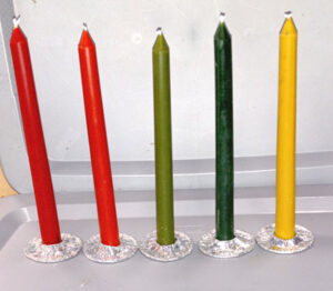 While available, get a FREE beeswax candle when buying two bottles of honey. These candles are made from the beeswax collected when extracting the honey from my hives. The candles are made from pure beeswax and are available in green and red non toxic tint as well as just the natural yellow color of the beeswax. They have about a 10 hour clean and chemical free burn, unlike most store bought candles made of paraffin or other man made waxes that commonly release chemicals such as toluene and benzene when burned. Candles are available separately for $5 each.